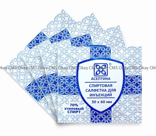 Салфетка для инъекций из бумажного текстилеподобного материала стерильная «М.К. Асептика» спиртовая (70% этиловый спирт)
