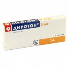Ингибитор АПФ, уменьшает образование ангиотензина II из ангиотензина I. Снижение содержания ангиотензина II ведет к прямому уменьшению выделения альдостерона. Уменьшает деградацию брадикинина и увеличивает синтез простагландинов. Снижает ОПСС, АД, преднагрузку, давление в легочных капиллярах, вызывает увеличение минутного объема крови и повышение толерантности миокарда к нагрузкам у больных с хронической сердечной недостаточностью. Расширяет артерии в большей степени, чем вены. Некоторые эффекты объясняются воздействием на тканевые ренин-ангиотензиновые системы. При длительном применении уменьшается гипертрофия миокарда и стенок артерий резистивного типа. Улучшает кровоснабжение ишемизированного миокарда. Ингибиторы АПФ удлиняют продолжительность жизни у больных хронической сердечной недостаточностью, замедляют прогрессирование дисфункции левого желудочка у больных, перенесших инфаркт миокарда без клинических проявлений сердечной недостаточности. Начало действия препарата - через 1 ч, достигает максимума через 6-7 ч и сохраняется в течение 24 ч. Продолжительность эффекта зависит также от величины принятой дозы. При артериальной гипертензии эффект отмечается в первые дни после начала лечения, стабильное действие развивается через 1-2 месяца. При резкой отмене препарата не наблюдали выраженного повышения АД. Диротон® уменьшает альбуминурию. У больных с гипергликемией способствует нормализации функции поврежденного гломерулярного эндотелия. Не влияет на концентрацию глюкозы в крови у больных сахарным диабетом и не приводит к учащению случаев гипогликемии. Фармакокинетика