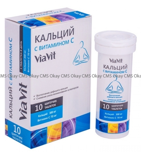 Кальций участвует в образовании костной ткани. Необходим для свертывания крови, поддержания стабильной сердечной деятельности, осуществления передачи нервных импульсов. Обладает общеукрепляющим действием. Аскорбиновая кислота – играет важную роль в регулировании окислительно-восстановительных процессов, регенерации тканей, участвует в синтезе гормонов, коллагена, нормализует проницаемость капилляров. Является природным антиоксидантом, повышает сопротивляемость организма к инфекциям. КАЛЬЦИЙ с ВИТАМИНОМ С VIAVIT (ВиаВит) восполняет дефицит кальция в крови и предназначен для: Мужчин и женщин в возрасте 35-55 лет, испытывающие нехватку кальция в крови , выражающуюся в ломкости ногтей и волос, ухудшении состояния зубов, экземе, аритмии, остеопорозе, необоснованной нервозности.Мужчин и женщин в возрасте 55 лет , испытывающие нехватку кальция в крови и как следствие появление искривления позвоночного столба и ломкости волос и костей, ухудшение состояния зубов, рахит; повышение артериального давления, нервозность, ухудшение памяти, остеопороз.Активных современных женщин от 30 ле т, которые заботятся о себе и стремятся вести здоровый образ жизни, периодически или постоянно придерживаются диеты. Область применения: Рекомендуется в качестве биологически активной добавки к пище, дополнительного источника кальция, витамина С. Не является лекарственным средством. Рекомендации по применению: 1 таблетка в день после еды, растворив в стакане воды, взрослым и детям старше 14 лет. Продолжительность приема - 20 дней