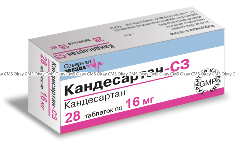 Торговое название препарата: Кандесартан-СЗ Международное непатентованное название: Кандесартан Лекарственная форма: таблетки Состав: 1 таблетка содержит: Дозировка 8 мг активного вещества: кандесартана цилексетила – 8,0 мг; вспомогательные вещества: лактозы моногидрат (сахар молочный) – 39,1 мг, целлюлоза микрокристаллическая – 41,0 мг, крахмал прежелатинизирован-ный (крахмал 1500) – 20,0 мг, кроскармеллоза натрия (примеллоза) – 4,0 мг, повидон (поливинилпирролидон среднемолекулярный) – 6,0 мг, кремния диоксид коллоидный (аэросил) – 0,7 мг, натрия стеарилфумарат – 1,2 мг. Дозировка 16 мг активного вещества: кандесартана цилексетила – 16,0 мг; вспомогательные вещества: лактозы моногидрат (сахар молочный) – 64,8 мг, целлюлоза микрокристаллическая – 68,0 мг, крахмал прежелатинизирован-ный (крахмал 1500) – 32,0 мг, кроскармеллоза натрия (примеллоза) – 6,0 мг, повидон (поливинилпирролидон среднемолекулярный) – 10,0 мг, кремния диоксид коллоидный (аэросил) – 1,2 мг, натрия стеарилфумарат – 2,0 мг. Дозировка 32 мг активного вещества: кандесартана цилексетила – 32,0 мг; вспомогательные вещества: лактозы моногидрат (сахар молочный) – 78,0 мг, целлюлоза микрокристаллическая – 74,0 мг, крахмал прежелатинизирован-ный (крахмал 1500) – 40,0 мг, кроскармеллоза натрия (примеллоза) – 8,0 мг, повидон (поливинилпирролидон среднемолекулярный) – 14,0 мг, кремния диоксид коллоидный (аэросил) – 1,5 мг, натрия стеарилфумарат – 2,5 мг. Описание Таблетки белого или почти белого цвета, круглые, плоскоцилиндрические с фаской и риской. Фармакотерапевтическая группа: антагонист рецепторов ангиотензина II Код АТХ: [С09СА06] Фармакологические свойства Фармакодинамика Ангиотензин II – основной гормон ренин-ангиотензин-альдостероновой системы, который играет важную роль в патогенезе артериальной гипертензии, сердечной недостаточности и других сердечно-сосудистых заболеваний. Основными физиологическими эффектами ангиотензина II являются вазоконстрикция, стимуляция продукции альдостерона, регуляция водно-электролитного гомеостаза и стимуляция клеточного роста. Все эти эффекты опосредованы взаимодействием ангиотензина II с ангиотензиновыми рецепторами 1 типа (АТ1 рецепторы). Кандесартан – селективный антагонист рецепторов ангиотензина II 1 типа (АТ1 рецепторов). Кандесартан не ингибирует ангиотензинпревращающий фермент (АПФ), который осуществляет превращение ангиотензина I в ангиотензин II и разрушает брадикинин; не влияет на АПФ и не приводит к накоплению брадикинина или субстанции Р. При сравнении кандесартана с ингибиторами АПФ развитие кашля реже встречалось у пациентов, получавших кандесартана цилексетил. Кандесартан не связывается с рецепторами других гормонов и не блокирует ионные каналы, участвующие в регуляции функций сердечно-сосудистой системы. В результате блокирования АТ1 рецепторов ангиотензина II происходит дозозависимое повышение активности ренина, ангиотензина I, ангиотензина II и снижение концентрации альдостерона в плазме крови. Артериальная гипертензия При артериальной гипертензии кандесартан вызывает дозозависимое длительное снижение артериального давления (АД). Антигипертензивный эффект препарата обусловлен снижением общего периферического сопротивления сосудов, без изменения частоты сердечных сокращений (ЧСС). Не отмечалось случаев выраженной артериально