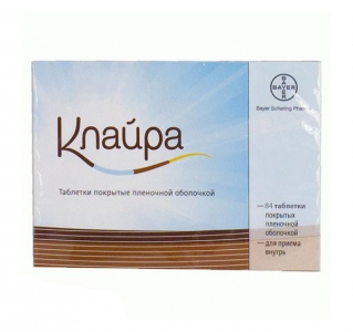 Дозировка Внутрь, независимо от приема пищи. Таблетки следует принимать в указанном на упаковке порядке каждый день приблизительно в одно и то же время, при необходимости запивая водой или другой жидкостью. Прием таблеток осуществляется непрерывно. Следует принимать по 1 таб./сут последовательно в течение 28 дней. Каждую новую упаковку начинают после приема последней таблетки из предшествующей календарной упаковки. Менструальноподобное кровотечение обычно начинается во время приема последних таблеток календарной упаковки и может еще не завершиться до начала следующей календарной упаковки. У некоторых женщин менструальноподобное кровотечение начинается после приема первых таблеток из новой календарной упаковки. Если гормональная контрацепция не использовалась ранее (в предыдущем месяце) Таблетки начинают принимать в 1-й день естественного менструального цикла женщины (т.е. в 1-й день менструального кровотечения). Переход с другого комбинированного гормонального контрацептива (другого КПК, вагинального кольца или трансдермального пластыря) Женщине следует начать прием препарата Клайра на следующий день после того, как была выпита последняя активная таблетка (таблетка, содержащая активные вещества) из упаковки предыдущего КПК. При использовании вагинального кольца или трансдермального пластыря женщине следует начать прием препарата Клайра в день их удаления. Если ранее использовался только прогестагенный метод контрацепции (мини-пили, инъекция, имплант) или внутриматочная система с высвобождением прогестагена (ВМС) Женщина может перейти на прием препарата Клайра с мини-пили в любой день (с импланта или ВМС — в день их удаления; с инъекционного метода — в день, на который назначена очередная инъекция), но во всех случаях в течение первых 9 дней приема таблеток рекомендуется дополнительно использовать барьерный метод контрацепции. После аборта в I триместре беременности Женщина может начать прием таблеток немедленно. В этом случае в дополнительных мерах контрацепции нет необходимости. После родов или аборта во II триместре беременности Следует рекомендовать женщине приступать к приему таблеток на 21-28-й день после родов или аборта во II триместре беременности. Если женщина начала принимать таблетки позднее, то ей рекомендуется дополнительно использовать барьерный метод контрацепции в течение первых 9 дней приема таблеток. Однако если половой контакт уже имел место, перед фактическим началом приема препарата Клайра необходимо исключить беременность, или женщине следует подождать наступления первой менструации. Прием пропущенных таблеток Пропущенными (белыми) неактивными таблетками можно пренебречь. Однако их следует выбросить во избежание непреднамеренного продления интервала между приемом активных таблеток. Пропуск активных таблеток Если задержка в приеме любой из таблеток составляет менее 12 ч, контрацептивная защита не снижается. Женщина должна выпить пропущенную таблетку сразу, как только вспомнит об этом, а остальные таблетки принимать в обычное время.