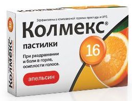 Пастилки со вкусом апельсина КОЛМЕКС Эффективны в комплексной терапии простуды и ОРЗ, при кашле, раздражении и боли в горле, осиплости голоса. Рекомендуется в качестве БАД к пище - источника эфирных масел, в том числе ментола. Преимущества: • Облегчают и освежают дыхание • Не содержат искусственных красителей и ароматизаторов • Изготовлены из натурального сырья • Удобная блистерная упаковка • Эффективны при кашле, раздражении, боли в горле, осиплости голоса Способ применения: взрослым и детям старше 14 лет по 1 пастилке 3 раза в сутки до полного рассасывания. Продолжительность приема – 7-10 дней. Возможен повторный прием в течение года. Форма выпуска: пастилки массой 2,5 г, 16 пастилок для рассасывания в блистерной поливинилхлоридной упаковке в картонной коробкеСрок годности : 36 месяцев